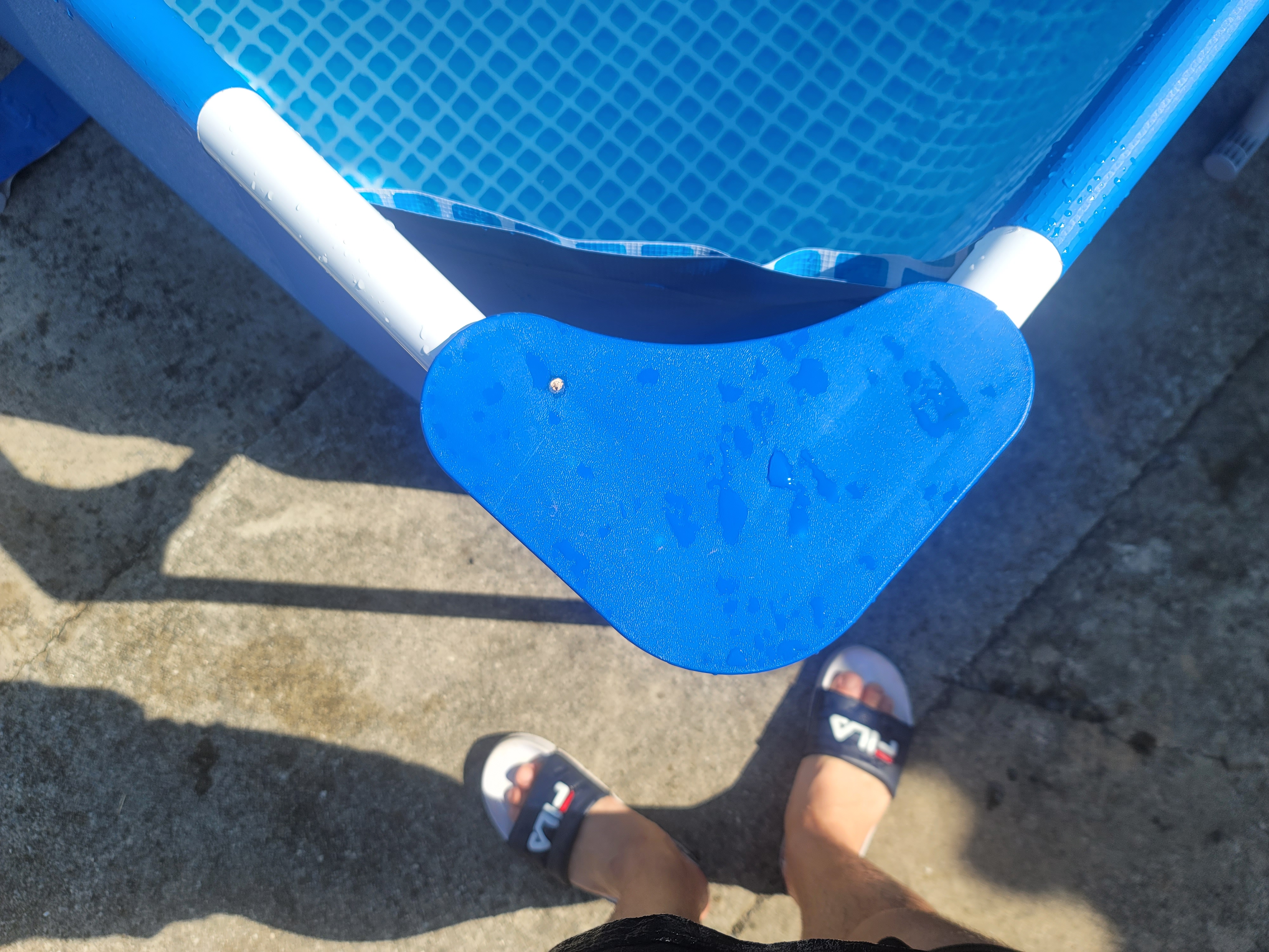 보시면 알겠지만 지지대를 설치후 바닥면에 있는 파란 천? 저부분을 물을 넣기전에 잘 넣어주셔야